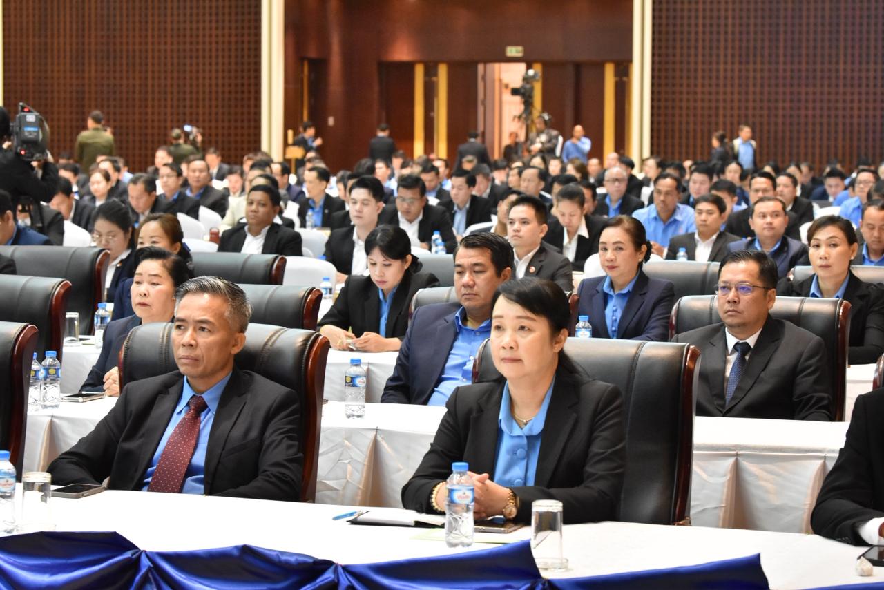 ໂຮມຊຸມນຸມໃຫຍ່ ສະເຫຼີມສະຫຼອງວັນສ້າງຕັ້ງສະຫະພັນກຳມະບານລາວ ຄົບຮອບ 70 ປີ