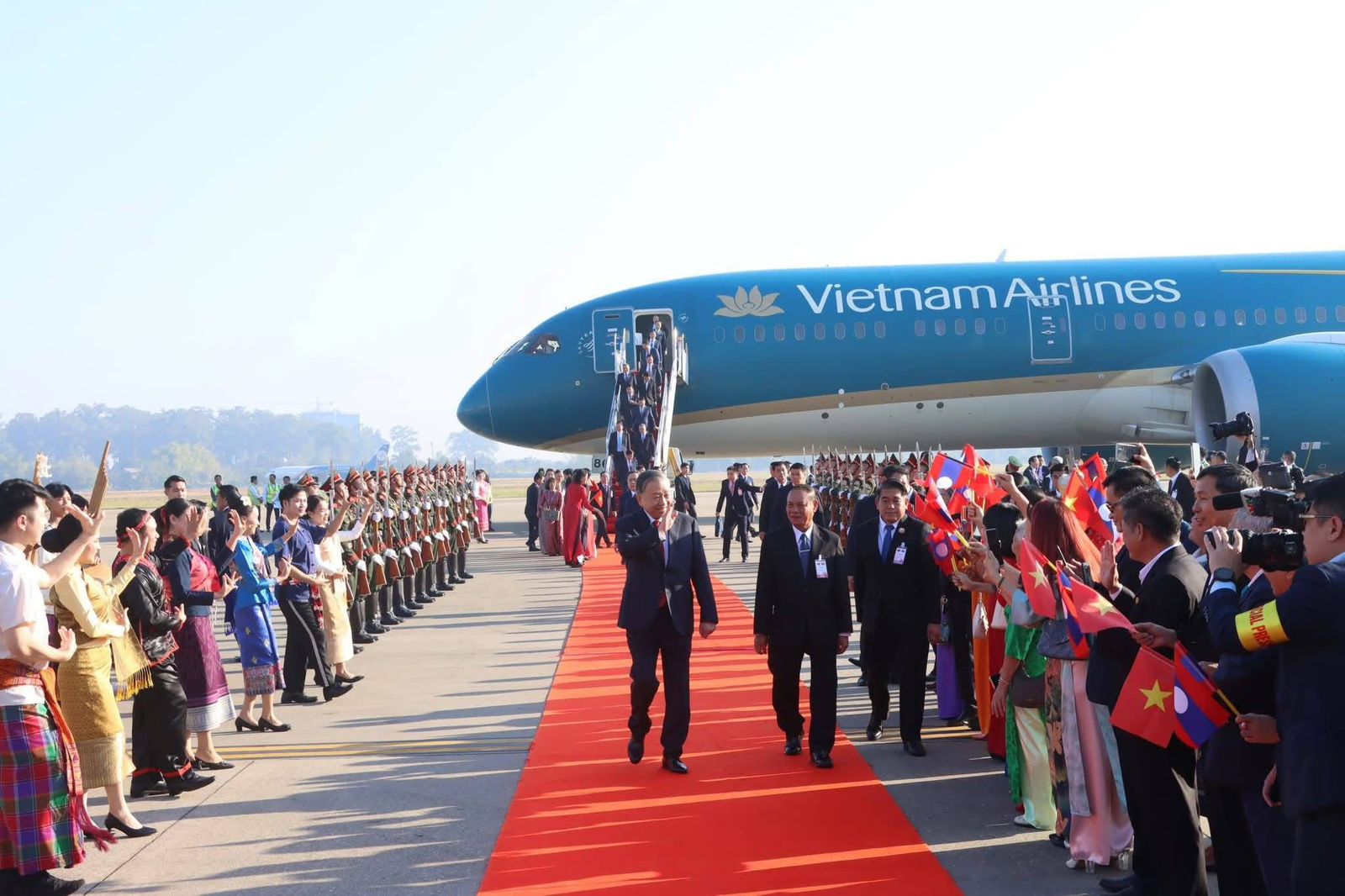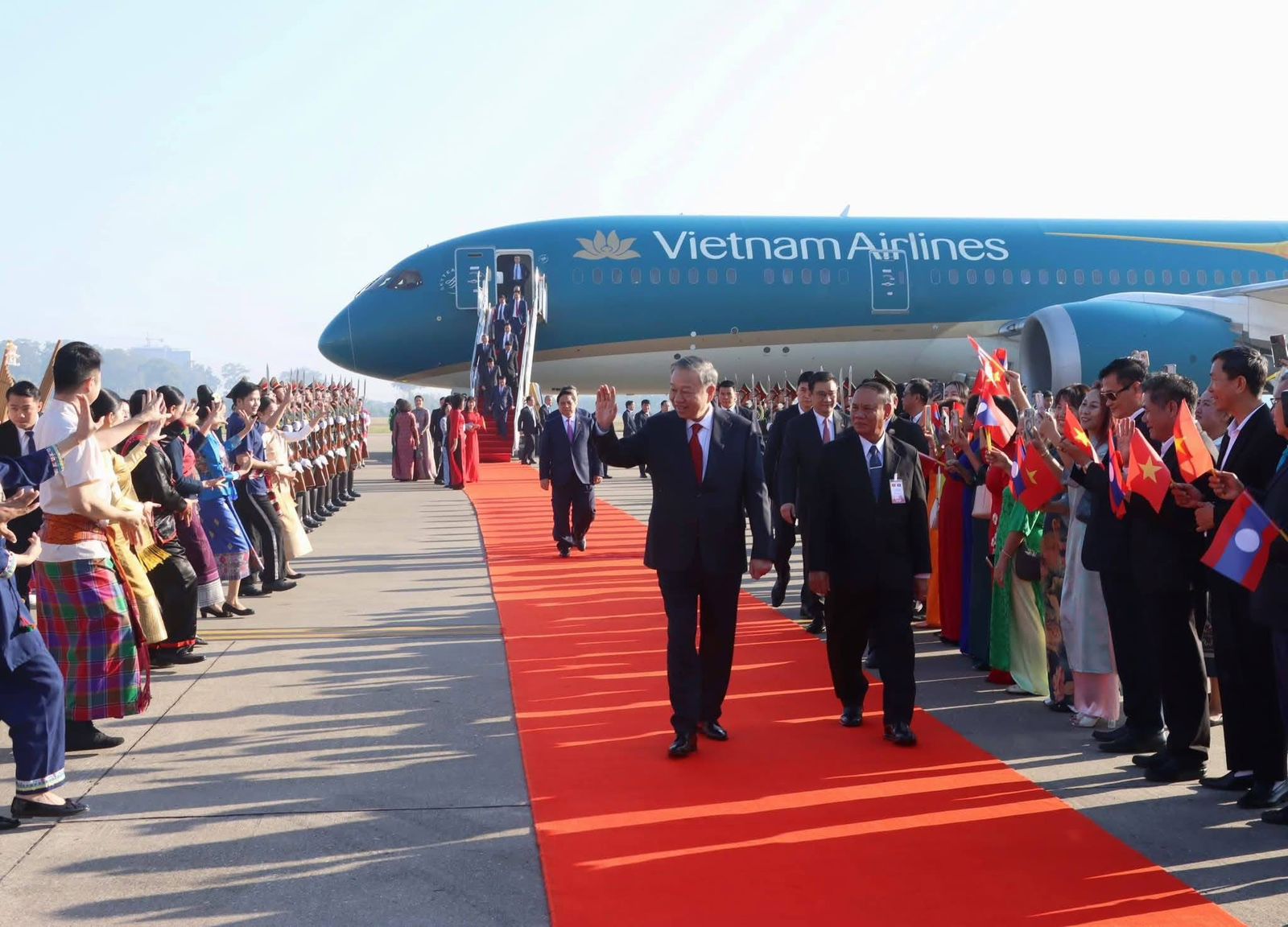 ໃນຕອນເຊົ້າຂອງວັນທີ 5 ກຸມພາ 2026, ສະຫາຍ ໂຕ ເລິມ, ເລຂາທິການໃຫຍ່ ຄະນະບໍລິຫານງານສູນກາງພັກກອມມູນິດຫວຽດນາມ ພ້ອມດ້ວຍຄະນະຜູ້ແທນຂັ້ນສູງ ແຫ່ງ ສສ. ຫວຽດນາມ ໄດ້ເດີນທາງເຖິງສະໜາມບິນສາກົນວັດໄຕ, ນະຄອນຫຼວງວຽງຈັນ ເພື່ອດໍາເນີນການຢ້ຽມຢາມລັດຖະກິດ ຢູ່ ສປປ ລາວ.