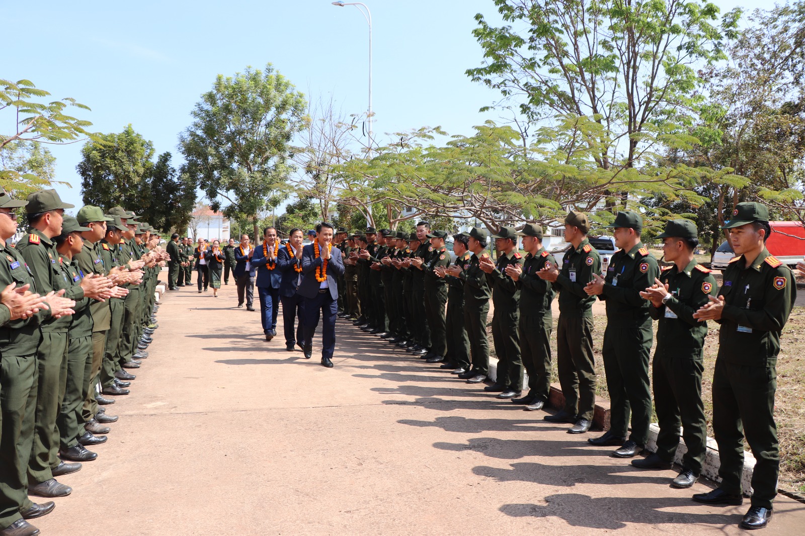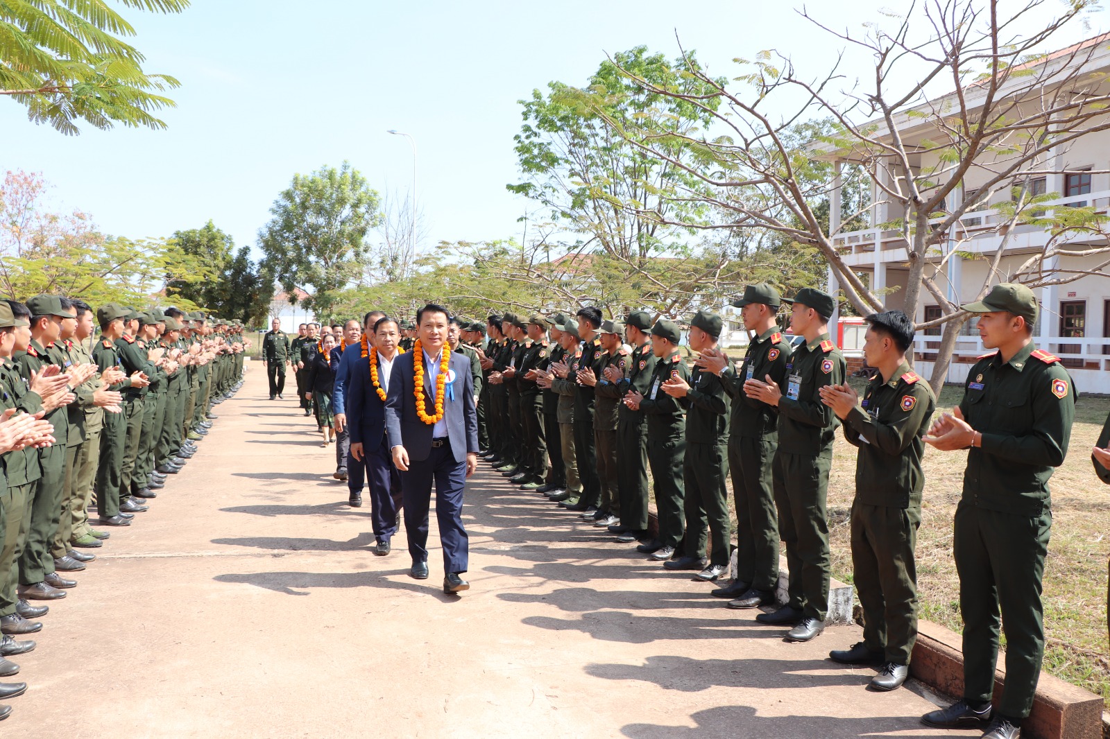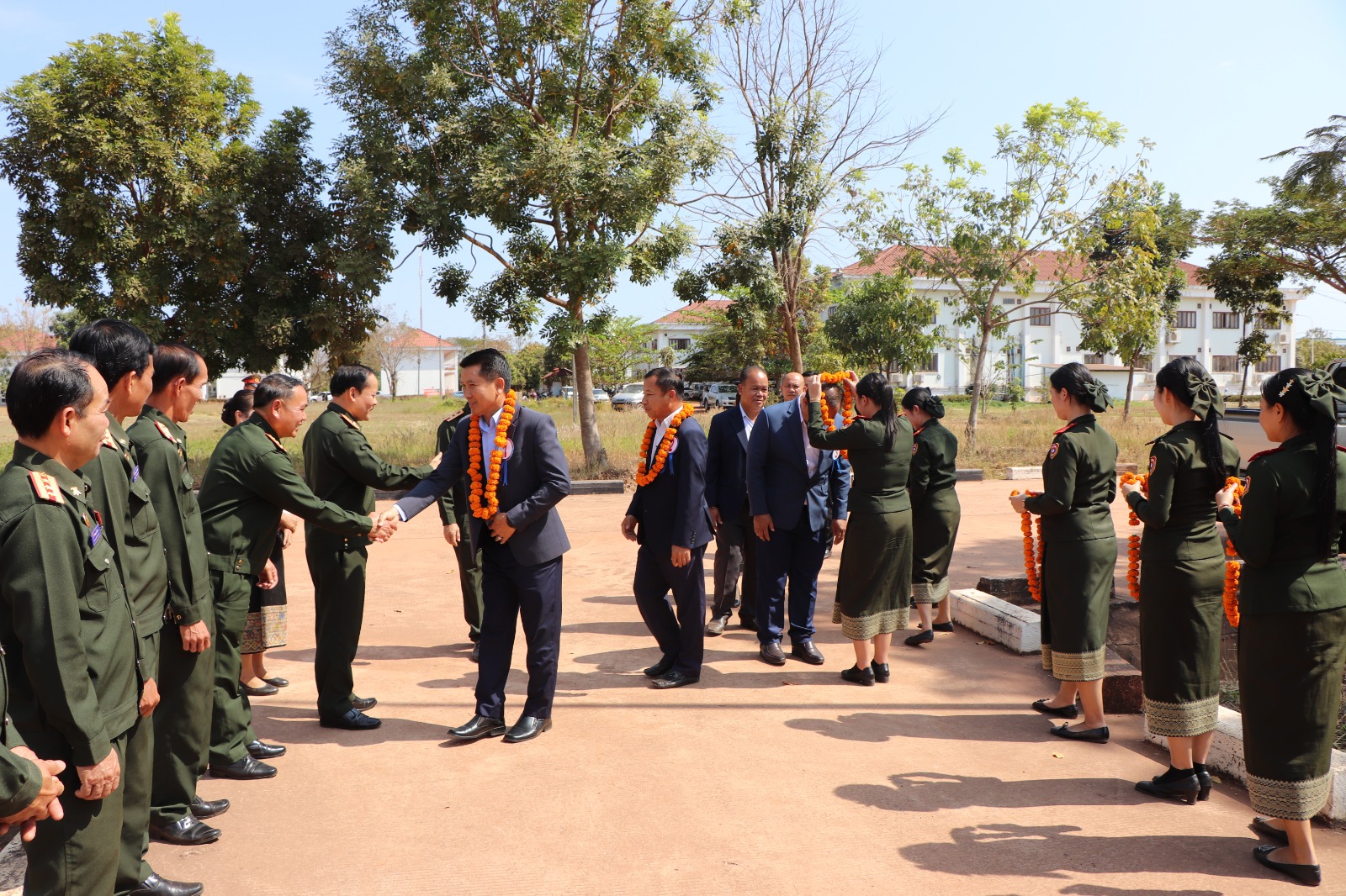 ໂດຍການຕ້ອນຮັບຂອງສະຫາຍ ພົນຈັດຕະວາ ປອ ຟອງສະໝຸດ ພົນທິລາດ ຮອງເລຂາຄະນະພັກ ຫົວໜ້າການທະຫານ ວິທະຍາຄານເຕັກນິກການທະຫານ ພ້ອມດ້ວຍ ຄະນະພັກ-ຄະນະອຳນວຍການ ພະນັກງານຫຼັກແຫຼ່ງທົ່ວວິທະຍາຄານຕ້ອນຮັບຢ່າງອົບອຸ່ນ.