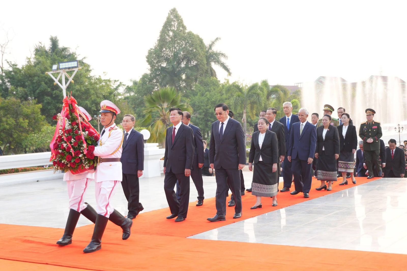 ວັນທີ 21 ມີນາ 2026 ການນຳພັກລັດ ນຳໂດຍ ສະຫາຍ ທອງລຸນ ສີສຸລິດ ເລຂາທິການໃຫຍ່ ຄະນະບໍລິຫານງານສູນກາງພັກ, ປະທານປະເທດ ແຫ່ງ ສປປ ລາວ ພ້ອມດ້ວຍຄະນະບໍລິຫານງານສູນກາງພັກ, ຄະນະລັດຖະບານ ໄດ້ເຂົ້າວາງພວງມາລາ ຢູ່ອະນຸສາວະລີນັກຮົບນິລະນາມ (ດາວແດງ) ແລະ ວາງກະຕ່າດອກໄມ້ ຢູ່ຕໍ່ໜ້າຮູບຂອງ ປະທານ ໄກສອນ ພົມວິຫານ ທີ່ຫໍພິພິທະພັນ ປະທານ ໄກສອນ ພົມວິຫານ ເນື່ອງໃນໂອກາດສະເຫຼີມສະຫຼອງວັນສ້າງຕັ້ງພັກປະຊາຊົນປະຕິວັດລາວ ຄົບຮອບ 71 ປີ.