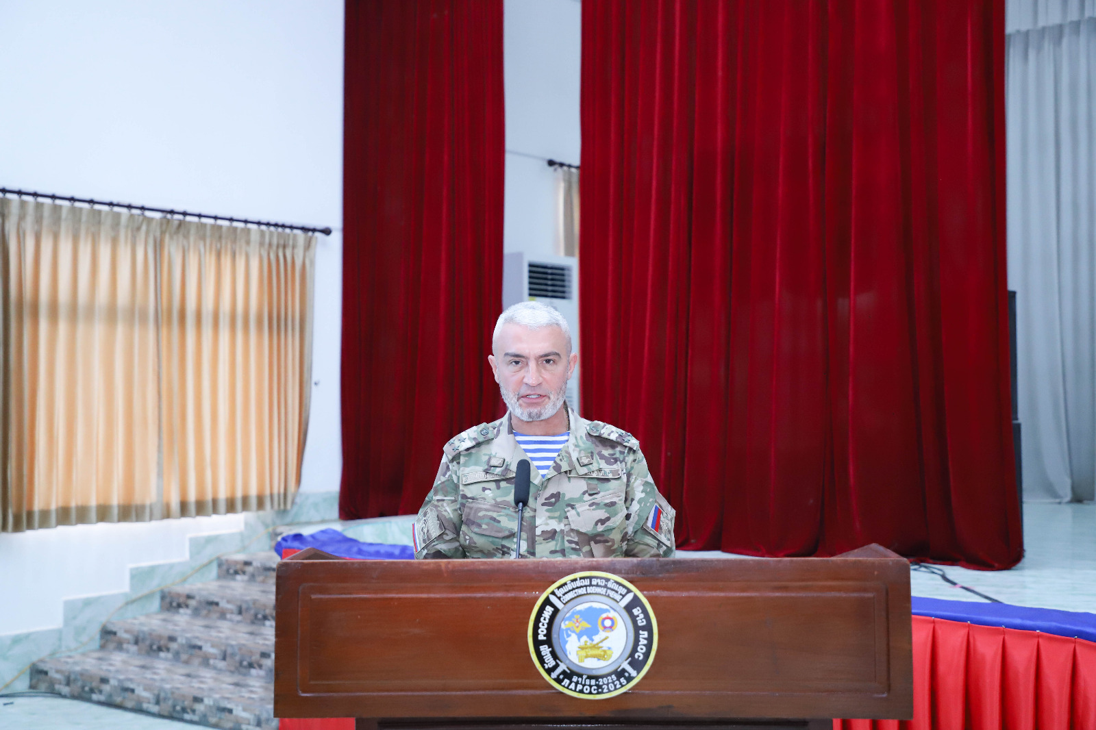 ໂອກາດນີ້, ສະຫາຍ ພັນເອກ ອີວານ ຕາຣາເຢັບ ໄດ້ກ່າວວ່າ: ການຊ້ອມຮົບຮ່ວມ ລາວ-ຣັດເຊຍ ໃນຄັ້ງນີ້ ເຊິ່ງຈັດຂຶ້ນເນື່ອງໃນໂອກາດ ຄົບຮອບ 65 ປີ ວັນສ້າງຕັ້ງສາຍພົວພັນທາງການທູດ ລະຫວ່າງ ສ ຣັດເຊຍ-ສປປ ລາວ ແລະ ວັນສະຖາປະນາ ສປປ ລາວ ຄົບຮອບ 50 ປີ, ປະເທດຂອງພວກເຮົາ ມີສາຍພົວພັນມິດຕະພາບ ແລະ ການຮ່ວມມືອັນຍາວນານບົນພື້ນຖານການເຄົາລົບນັບຖື, ໄວ້ເນື້ອເຊື່ອໃຈ ແລະ ສະໜັບສະໜູນເຊິ່ງກັນ ແລະ ກັນ. ການຊ້ອມຮົບຮ່ວມໃນຄັ້ງນີ້, ເປັນການປະກອບສ່ວນອັນສຳຄັນໃນການເສີມຂະຫຍາຍການຮ່ວມມືດ້ານວຽກງານປ້ອງກັນຊາດ, ຍົກລະດັບການປະສານສົບທົບສູ້ຮົບຮ່ວມກັນ, ແລກປ່ຽນບົດຮຽນເຊິ່ງກັນ ແລະ ກັນ ແລະ ເສີມສ້າງຄວາມໝັ້ນຄົງໃນພາກພື້ນ ພ້ອມຕີລາຄາສູງຕໍ່ຄວາມພ້ອມຂອງເພື່ອນມິດຝ່າຍລາວ ໃນການປະຕິບັດໜ້າທີ່ ພ້ອມທັງແລກປ່ຽນຄວາມຮູ້ ເຊິ່ງກັນ ແລະ ກັນ ໃນການຊ້ອມຮົບຄັ້ງນີ້, ຈະສຳເລັດໄດ້ຢ່າງມີປະສິດທິຜົນສູງ ແລະ ບົດຮຽນທີ່ໄດ້ຮັບຈາກການຊ້ອມຮົບຈະເປັນພື້ນຖານອັນສໍາຄັນ ໃນການເສີມຂະຫຍາຍການຮ່ວມມືລະຫວ່າງຊາດ ຂອງພວກເຮົາ.