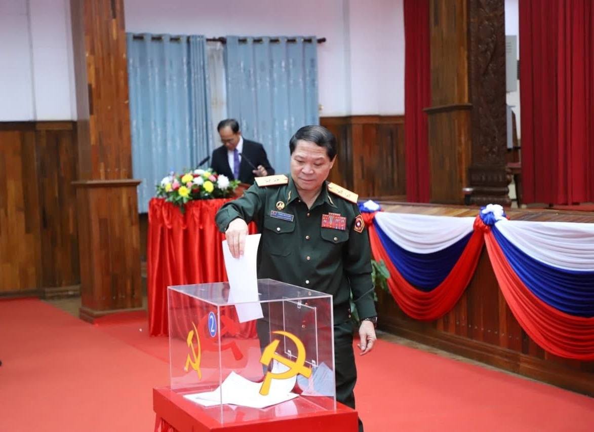 ຈາກນັ້ນ, ບັນດາຜູ້ແທນກອງປະຊຸມ ໄດ້ພ້ອມກັນໃຊ້ສິດຂອງຕົນປ່ອນບັດທາບທາມບຸກຄະລາກອນຮັບສະໝັກເລືອກຕັ້ງເຂົ້າໃນຄະນະບໍລິຫານງານສູນກາງພັກ ສະໄໝທີ XII ຮອບທີ 2
