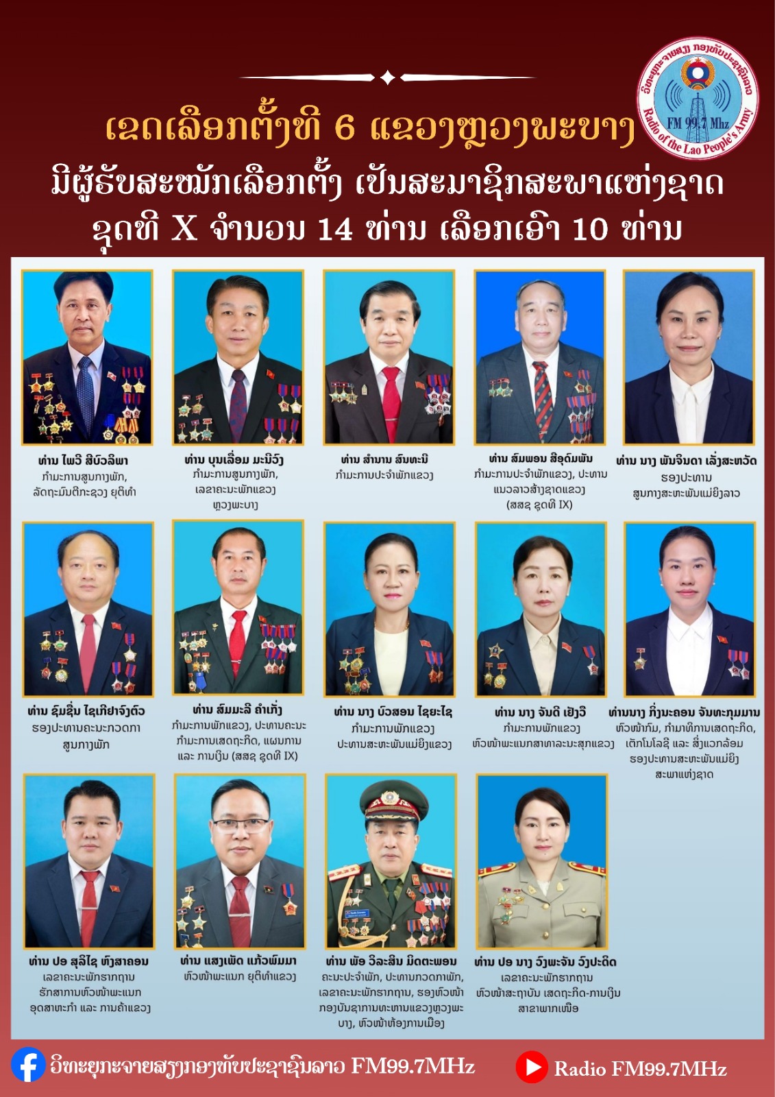ລົງສະໝັກຮັບເລືອກຕັ້ງ ເປັນສະມາຊິກສະພາແຫ່ງຊາດ ຊຸດທີ X ປະຈຳເຂດເລືອກຕັ້ງທີ 15 ແຂວງຈໍາປາສັກ: ມີຈໍານວນຜູ້ສະໝັກ 20 ທ່ານ, ເລືອກເອົາ 15 ທ່ານ.