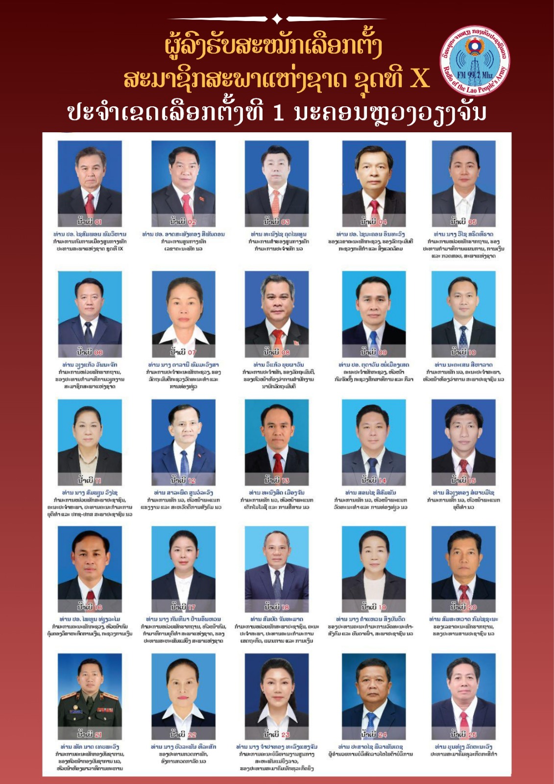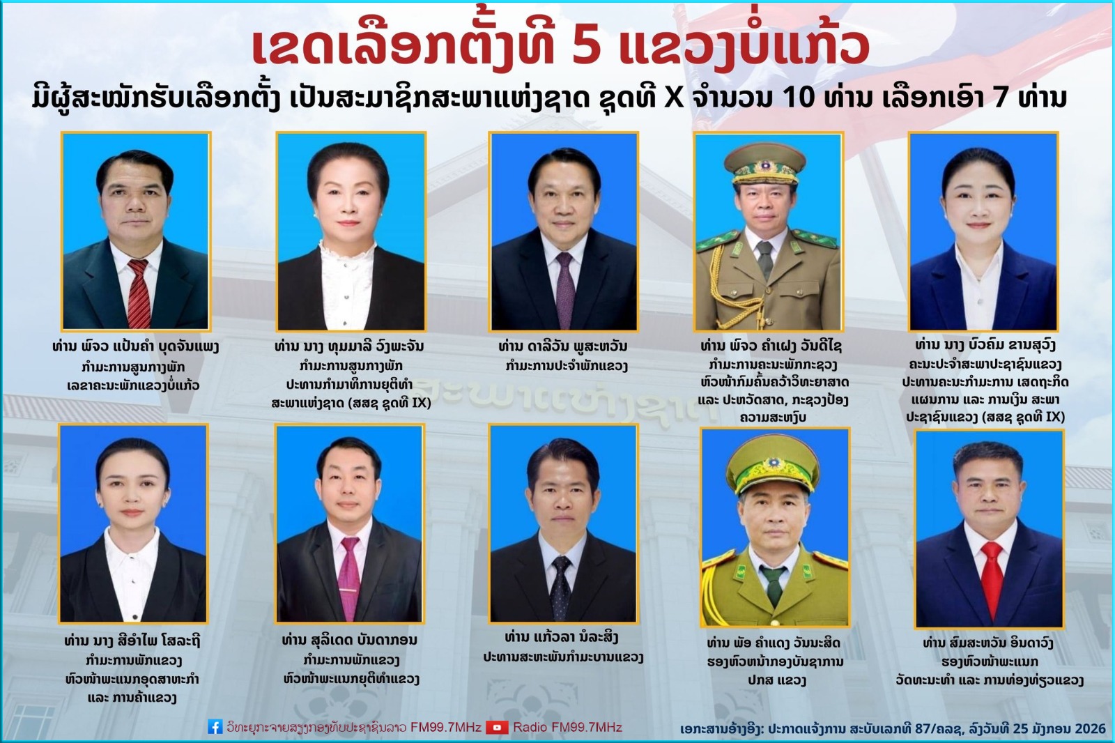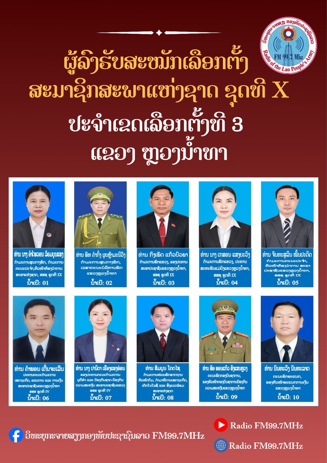 ຜູ້ລົງສະໝັກຮັບເລືອກຕັ້ງ ເປັນສະມາຊິກສະພາແຫ່ງຊາດ ຊຸດທີ X ປະຈຳເຂດເລືອກຕັ້ງທີ 5 ແຂວງບໍ່ແກ້ວ: ມີຈໍານວນຜູ້ສະໝັກ 10 ທ່ານ, ເລືອກເອົາ 07 ທ່ານ.